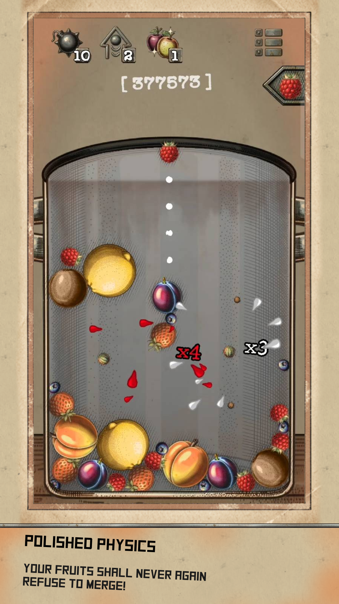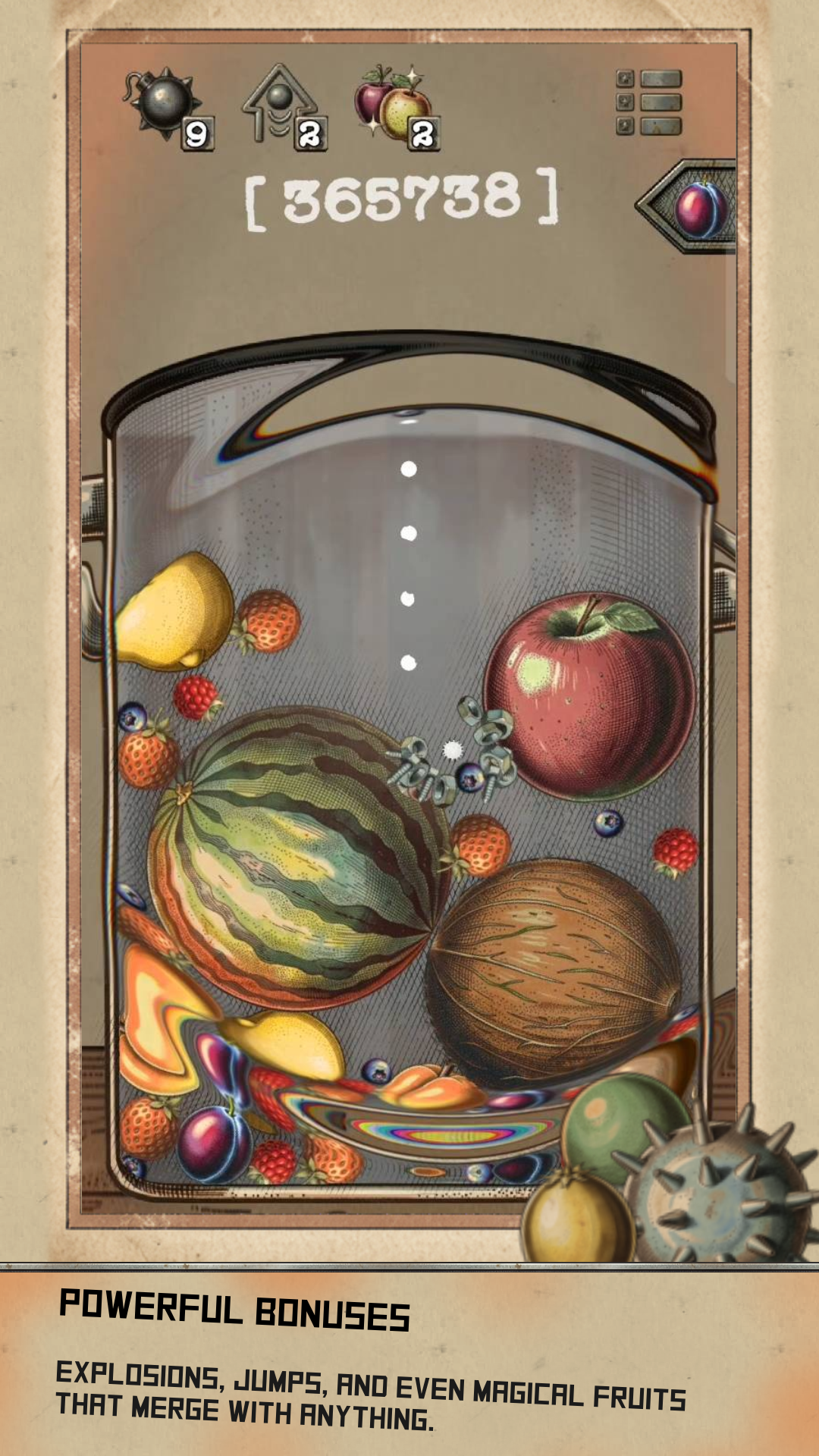- Deploy tactical power-ups when the pot gets spicy: iron bomb for stuck fruit, rubber ball for trick shots, golden fruit for the clutch save.